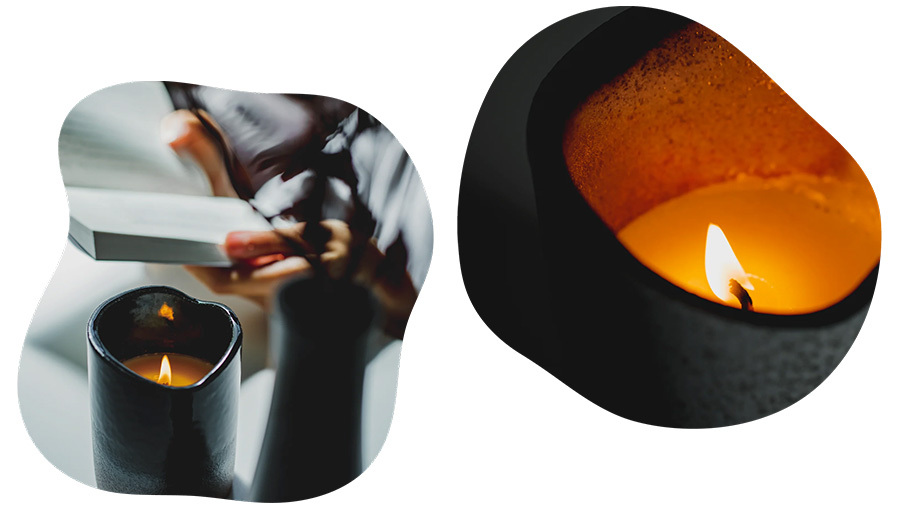 火を灯している時間は短く繰り返さず、表面がなるべく外側まで溶けるように灯していただくことをおすすめいたします。こうすることで、外側の蝋の溶け残りを少なくすることができます。