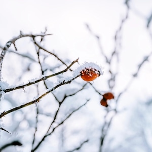 木守柿とは、柿の収穫を終えるとき全部ちぎらずに、来年もよく実るようにとのまじないで、柿をひとつふたつ残しておく昔ながらの風習のことです。 雪が降る中、木の枝に残された柿をイメージした、フルーティ・ムスキー調の香り。