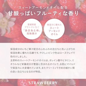 保湿成分のいちご果汁配合のふわふわの泡立ちと洗い上がりの保湿効果に優れた石鹸です。