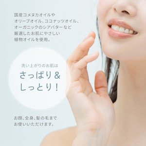 泡立ちもよく大きな泡からキメの細かい泡までふわふわもちもちした泡がバランスよく泡立ちます。お顔からお体、髪の毛まで全身にご使用頂けます。