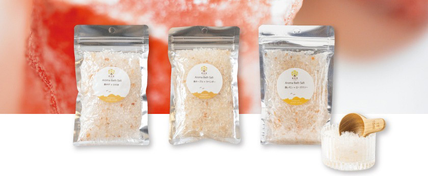 大三島ネーブルオレンジ精油・いよかん精油とオーガニックラベンダー精油、オーガニックフランキンセンス精油を配合。ヒマラヤ岩塩入浴効果+シトラス&ハーブの深いリラックス効果がある香りです。