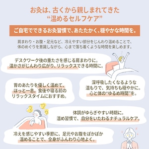 2000年以上前から健やかな身体づくりの『よりどころ』として親しまれてきた伝統的なセルフケア“お灸”。日々の暮らしの中で、仕事終わりや寝る前に、少しだけ自分に優しい時間をプレゼントしてみませんか。
