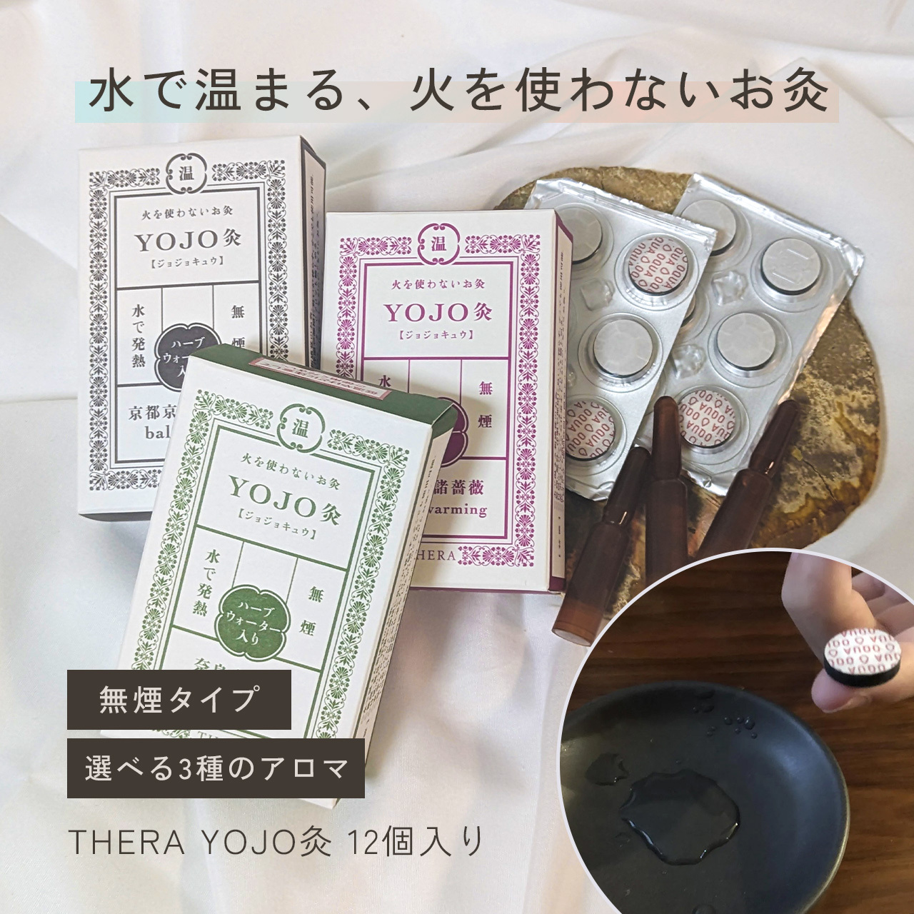 火を使わない お灸 (無煙) セルフケア THERA テラ YOJO灸 12個入りアロマ水付き [送料無料] / totonowa