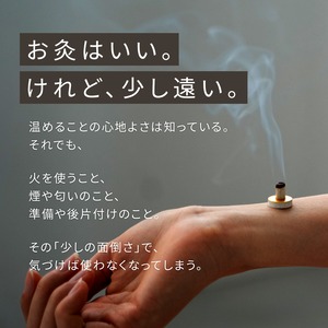 お灸に興味はあるけれど、火が怖い、煙が嫌、匂いがお部屋や洋服につくのが嫌・・・そんな声から開発した、火を使わないお灸です。